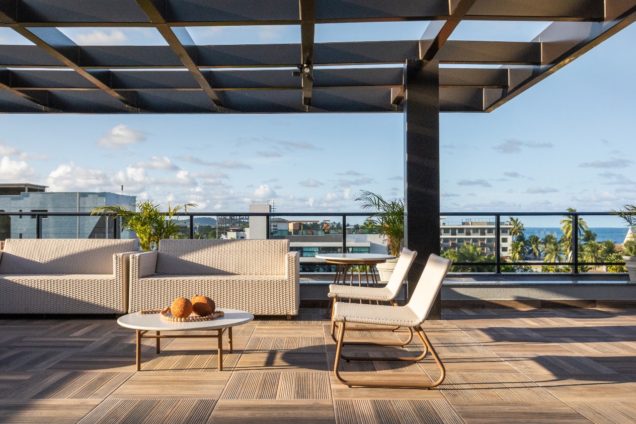 • Piscina no rooftop com vista para o mar