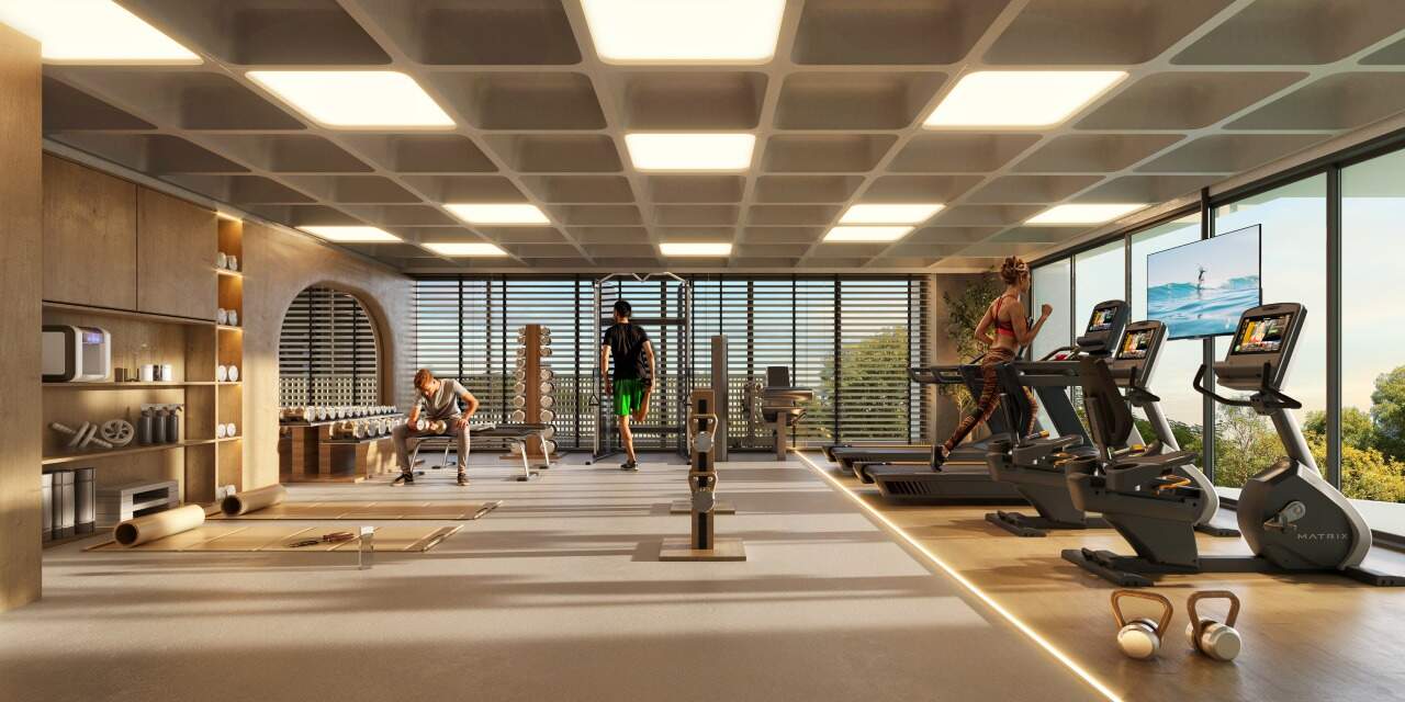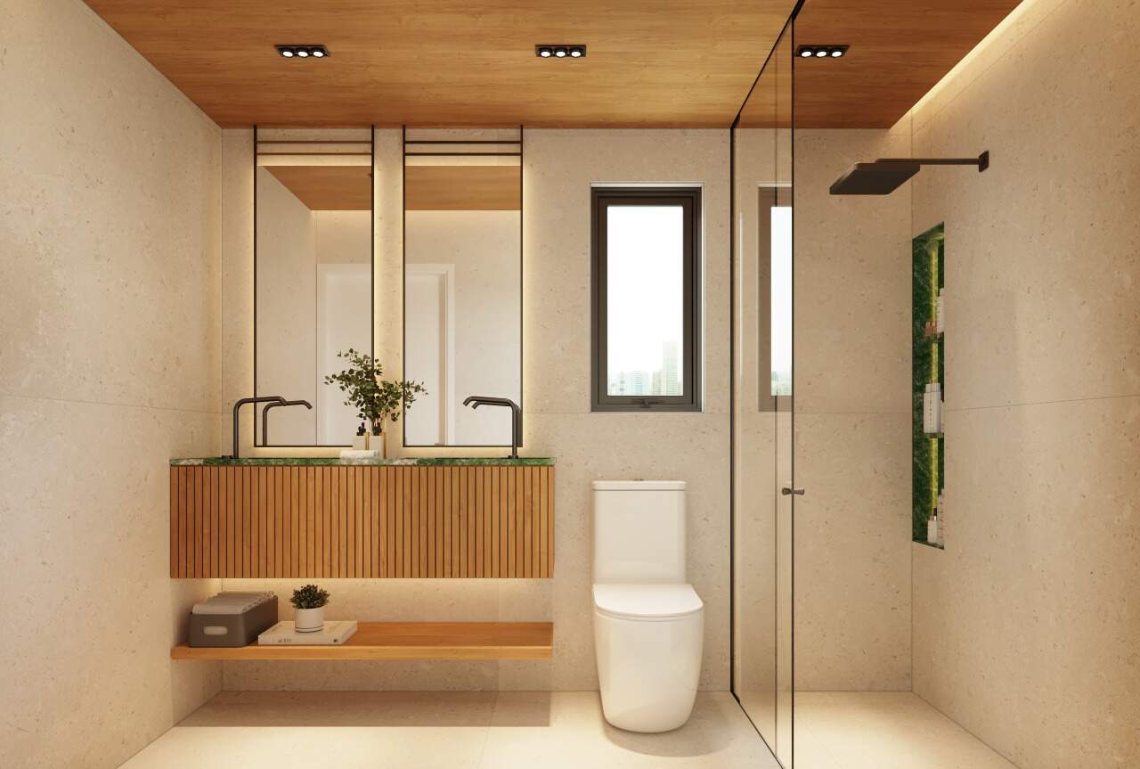 As tipologias variam entre 1 quanto, apartamento de 2 quartos master, 3 quartos e coberturas lineares de 4 quartos, todas com plantas flexíveis que integram os ambientes sociais e priorizam o uso racional do espaço.