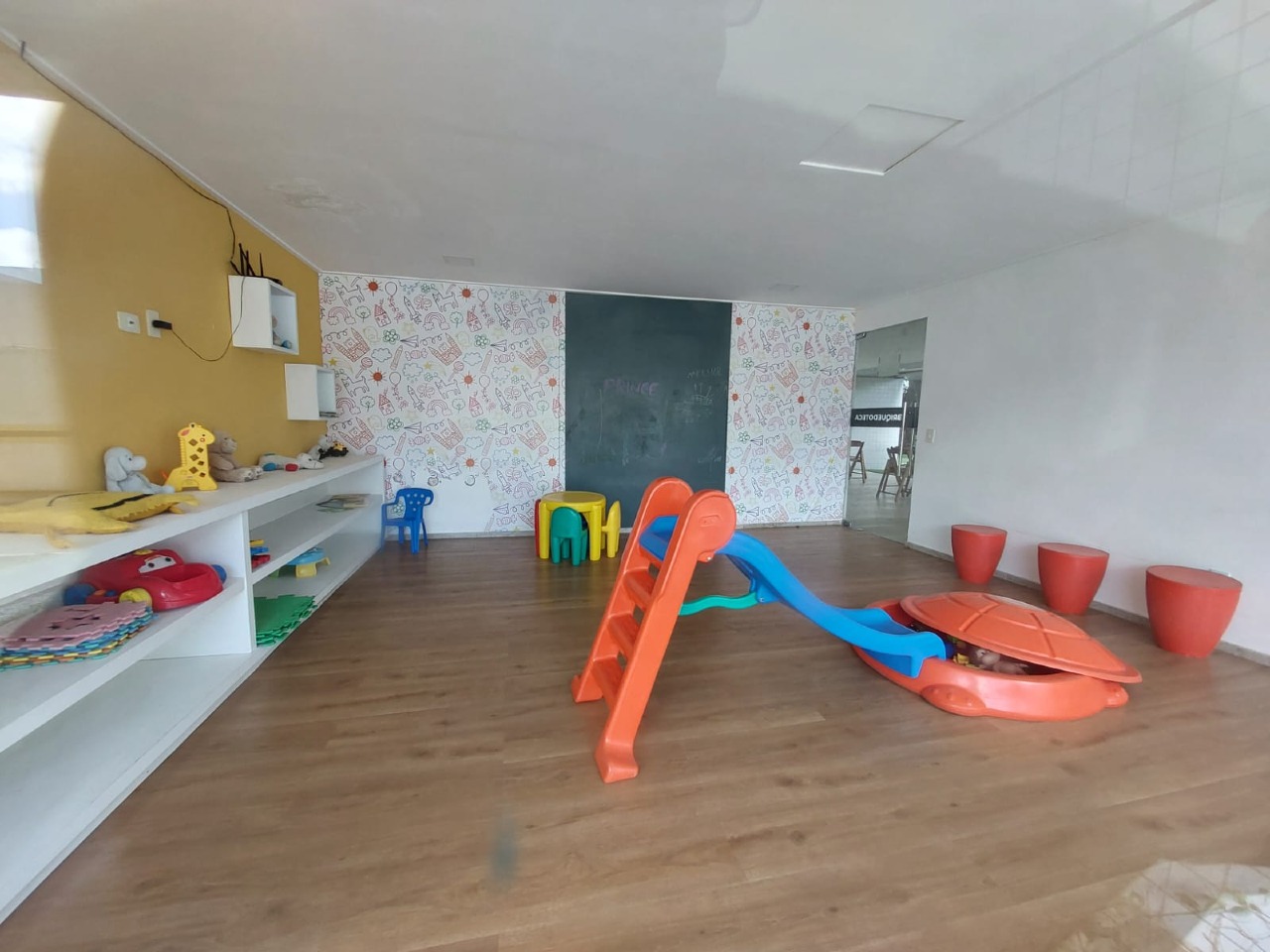 O condomínio dispõe de portaria 24hs, cerca elétrica, portão eletrônico, piscina adulto e infantil, espaço gourmet, quadra poliesportiva, churrasqueira e salão de festa.