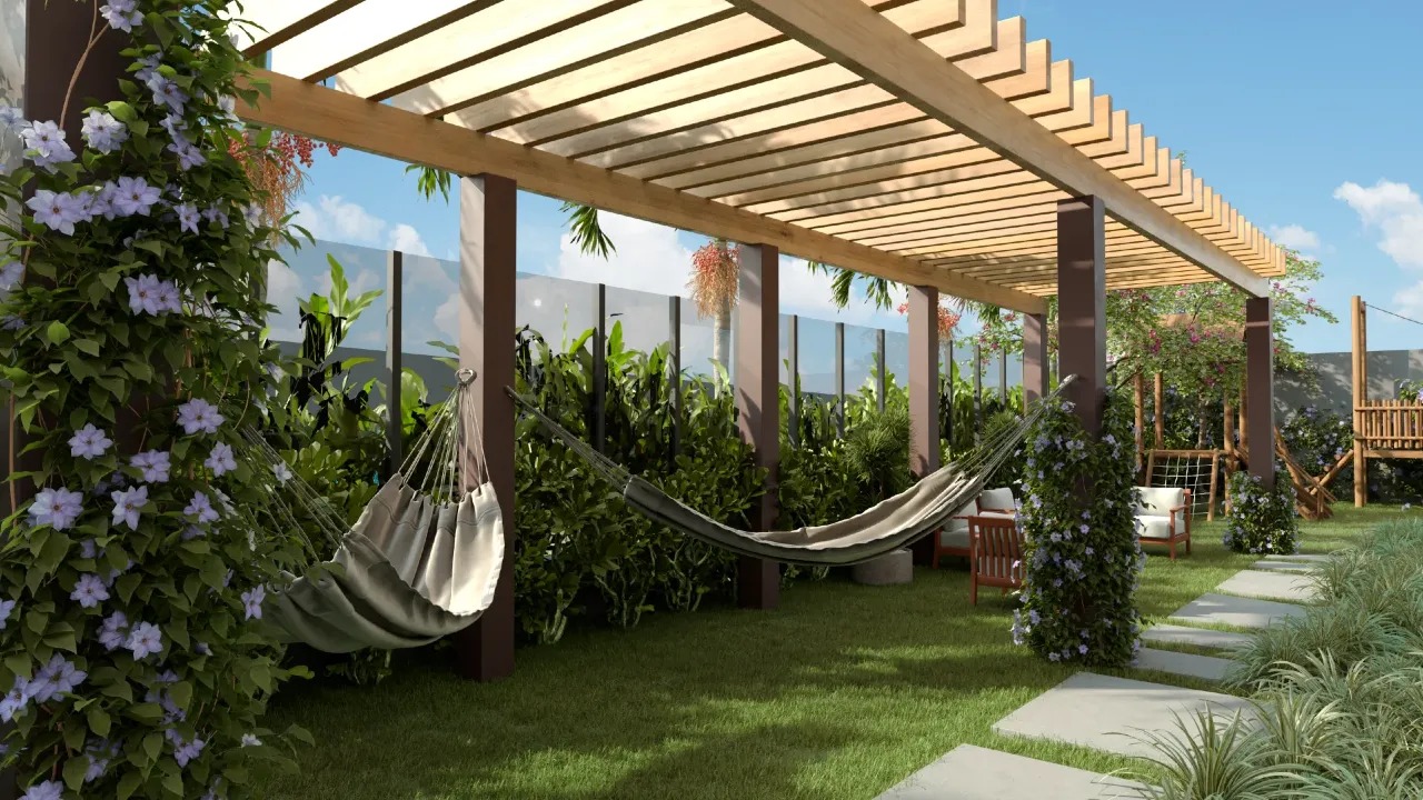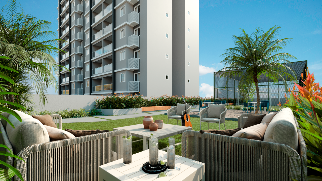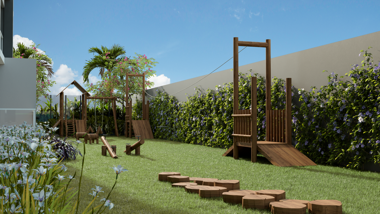 Apartamentos térreo são do tipo Jardim e possuem uma área verde estendida integrada à varanda.
