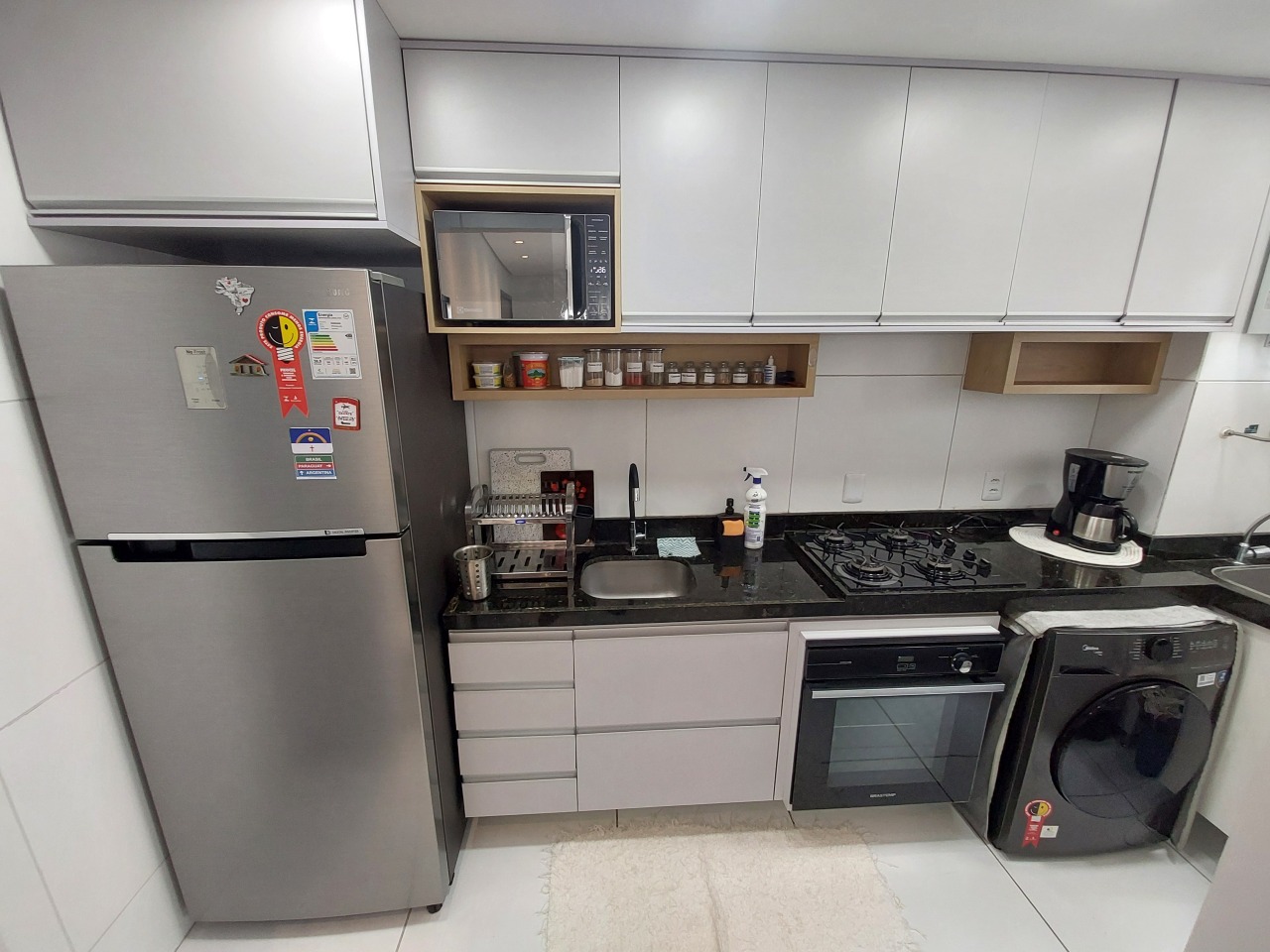 O apartamento possui varanda, sala para dois ambientes, 2 quartos (sendo 1 suíte), banheiro social com box, cozinha e área de serviço. 1 vaga de garagem rotativa. Além de tudo isso, o apartamento já conta com boiler, para aquecimento de água a gás! (O apartamento não será alugado com toda a mobília constante nas fotos. Farão parte da locação apenas os móveis planejados de cozinha e banheiros, guarda-roupas dos quartos, forno, cooktop, e rack da sala)
