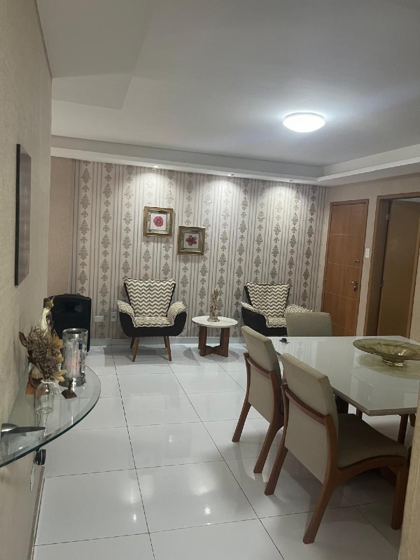 O apartamento conta com 96 m², 3 quartos, ampla sala para dois ambientes e varanda.