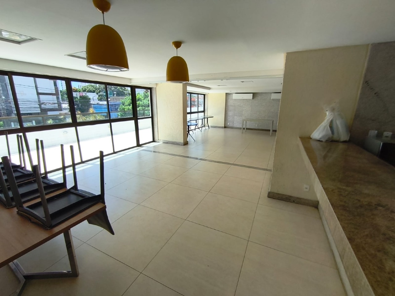 Já o apartamento com70m² possui 3 quartos, sendo uma suíte, um WC social e WC serviço, varanda, além de ser super ventilado.