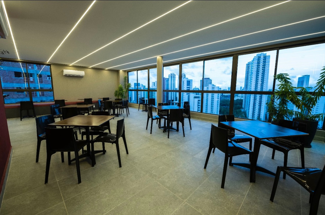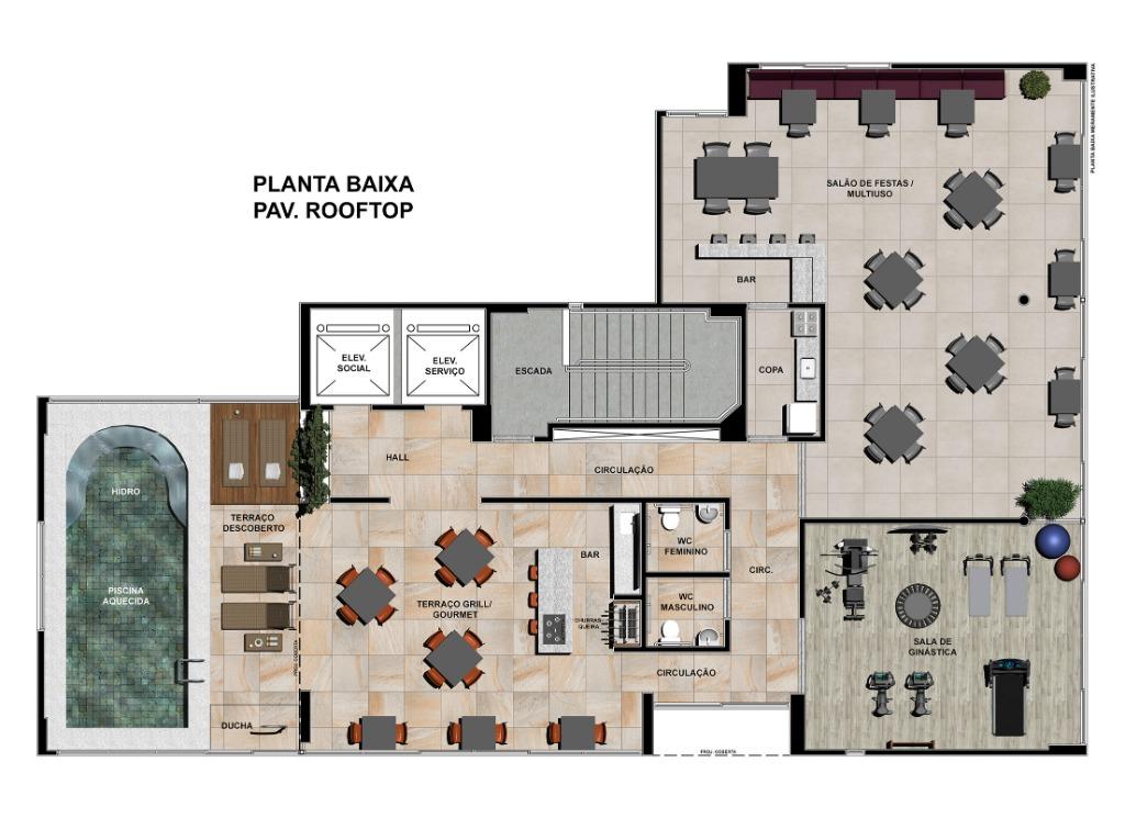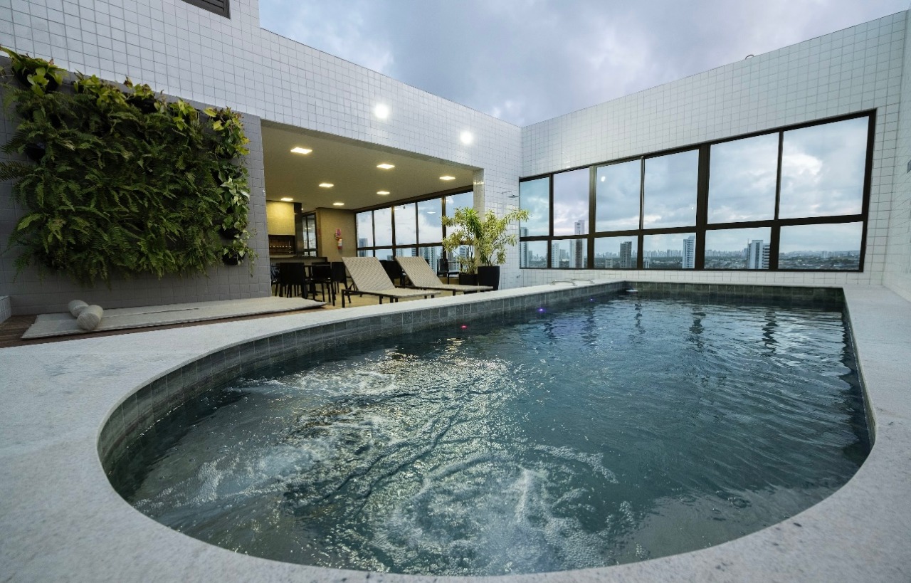 Condomínio com lazer completo, piscina, salão de festas, sala de ginástica, terraço coberto e descoberto.