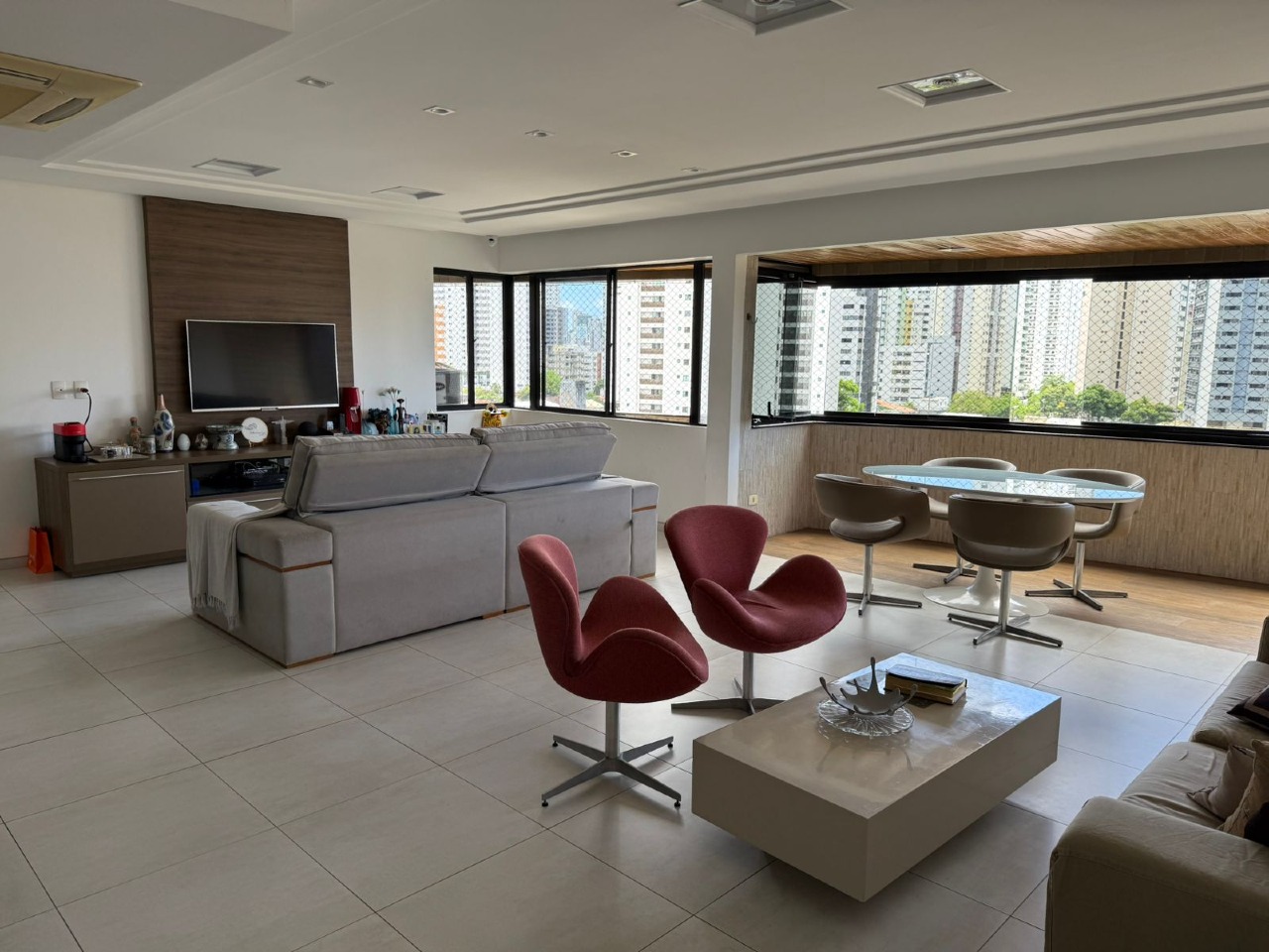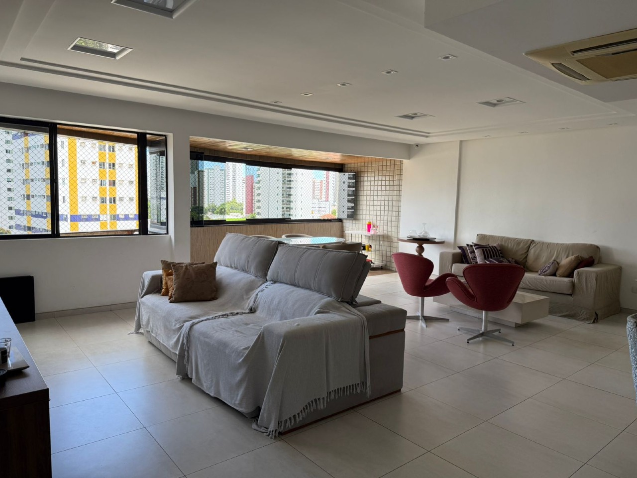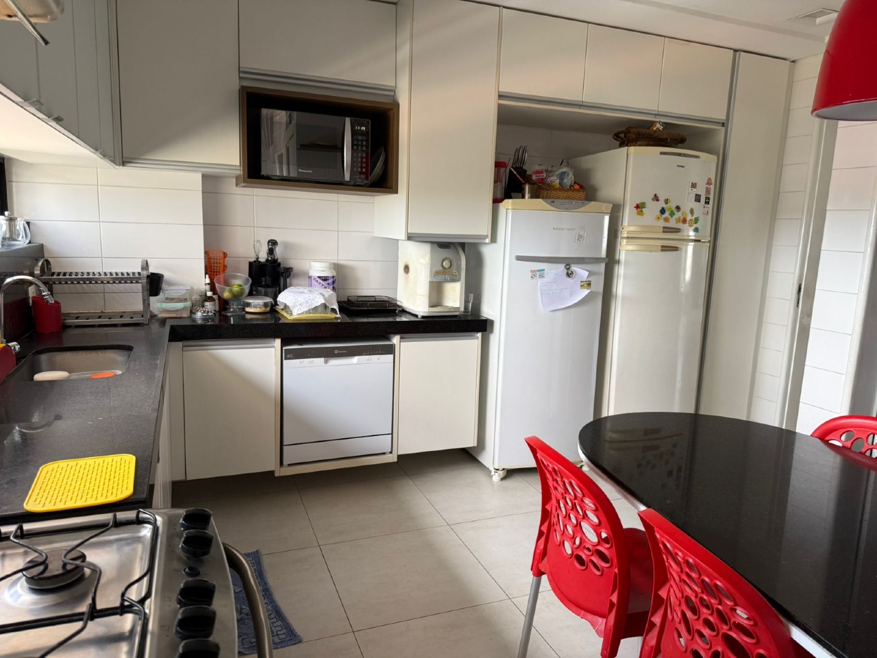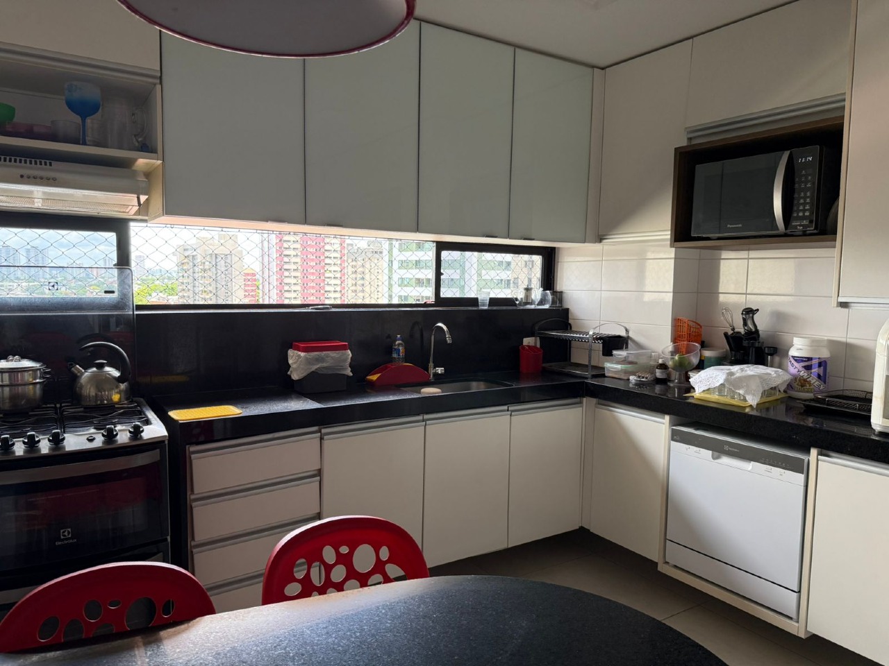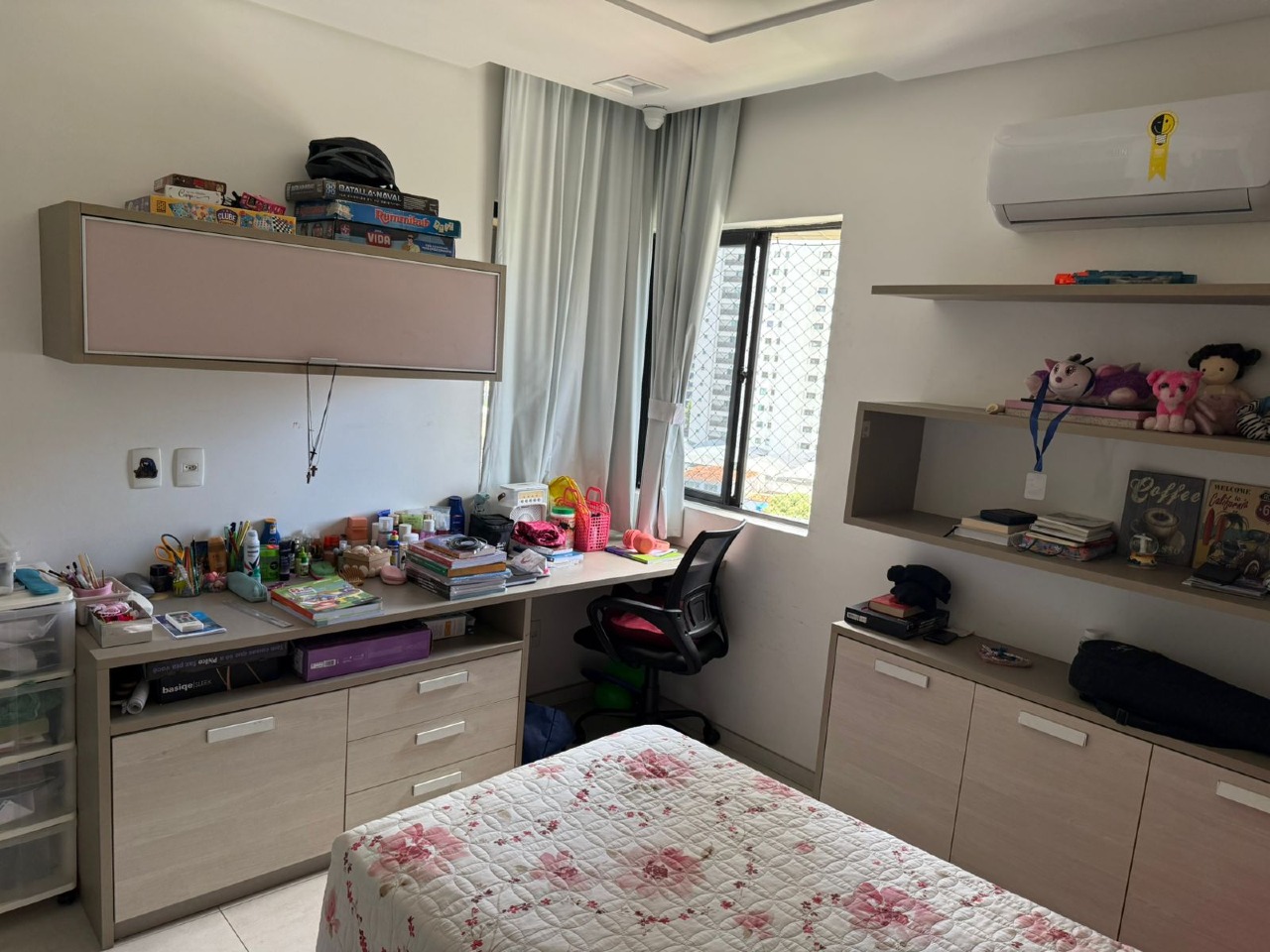 São 4 quartos todos com armários, (2suites, sendo uma com closet), generosa sala climatizada com varanda integrada, lavado, cozinha com armários, despensa, dep. completa. 2 vagas de garagem