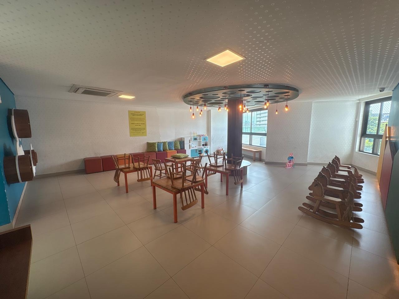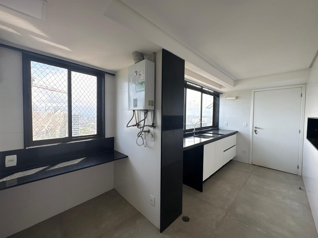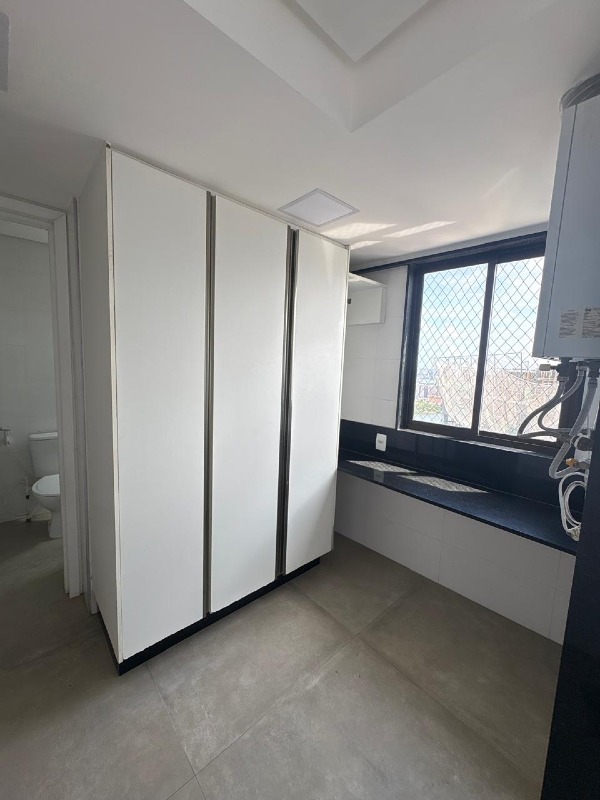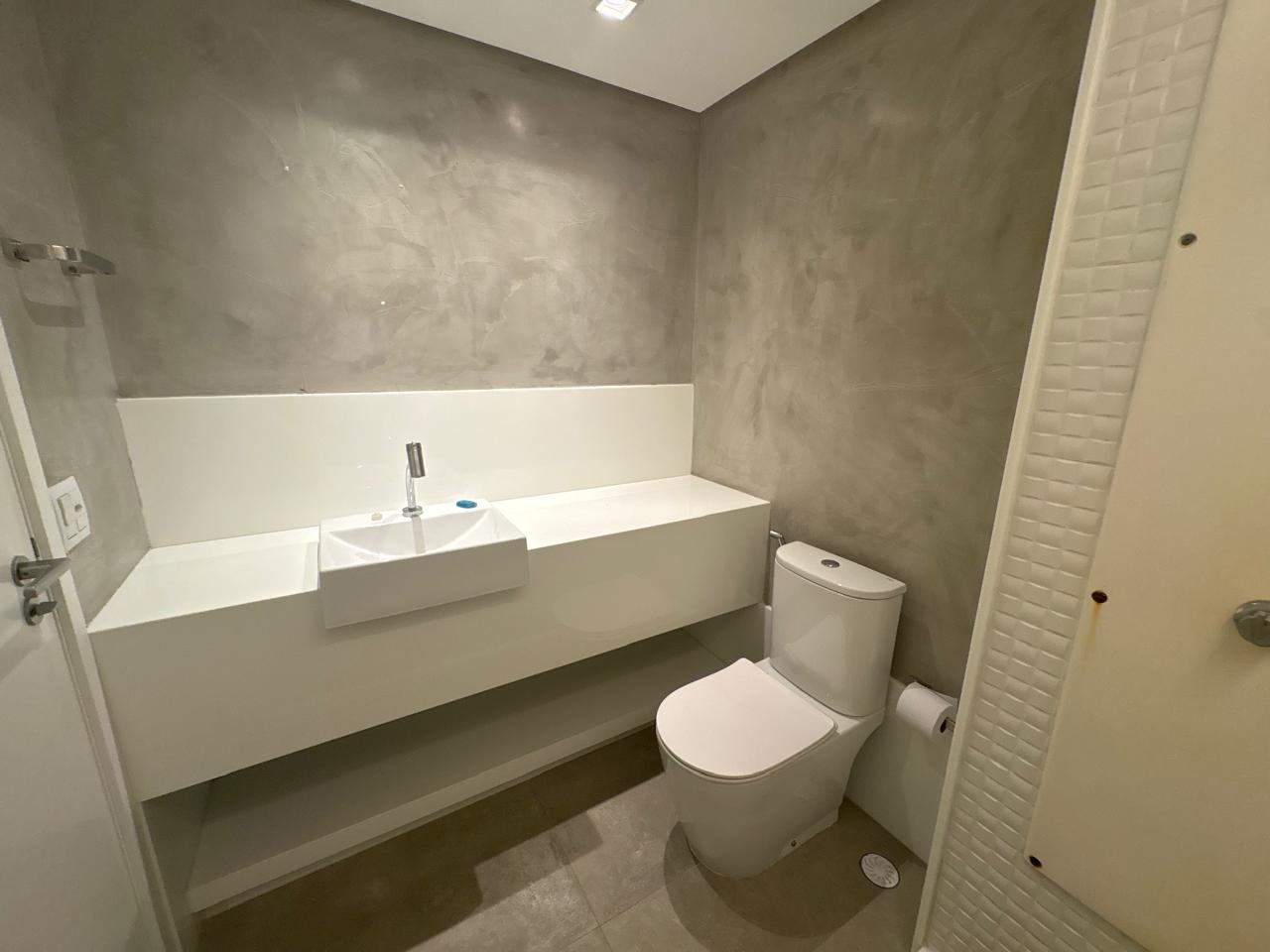 Piso em porcelanato em todos os ambientes. Sala ampla, com papel de parede, iluminação led, embutida em forro de gesso e painel planejado. Cozinha integrada com bancada, cooktop e iluminação instalada. Área de serviço equipada com banheiro de dependência.