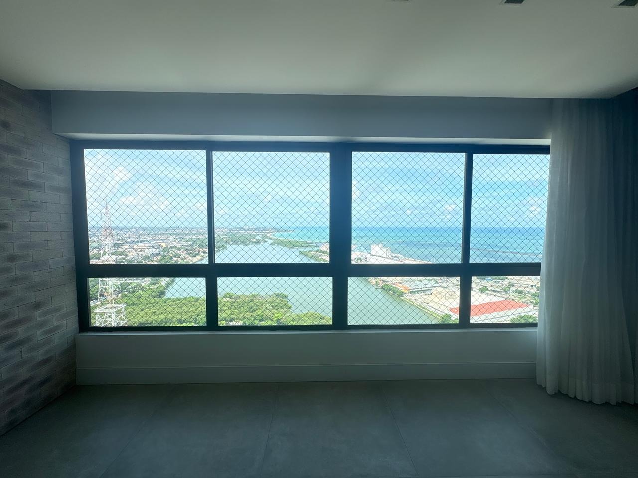 O Apartamento fica em andar muito alto, ventilado e silencioso, com janelas panorâmicas e vista ampla para o Rio Capibaribe e o mar.