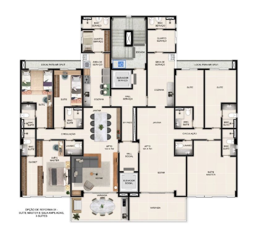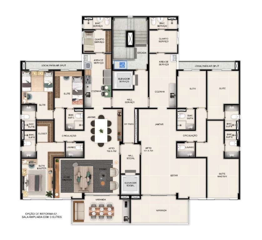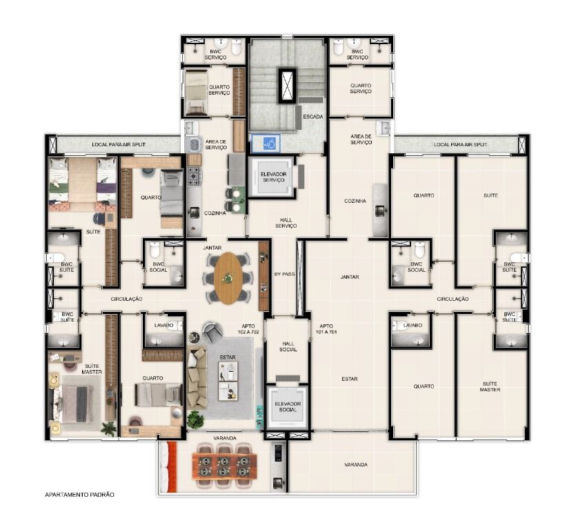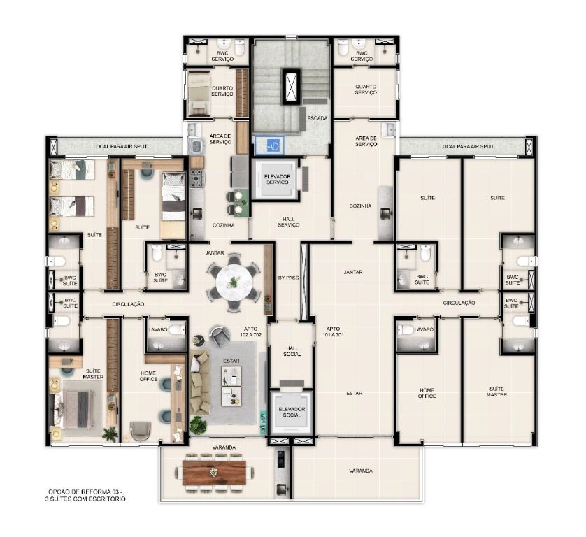 Suas unidades possuem 4 quartos 2 suítes, sala para 2 ambientes, varanda gourmet, lavabo, WC social, cozinha, área de serviço, dependência completa. Fechadura digital na porta social. Infraestrutura para aquecedor de passagem. 2 vagas de estacionamento. Lazer equipado e decorado.