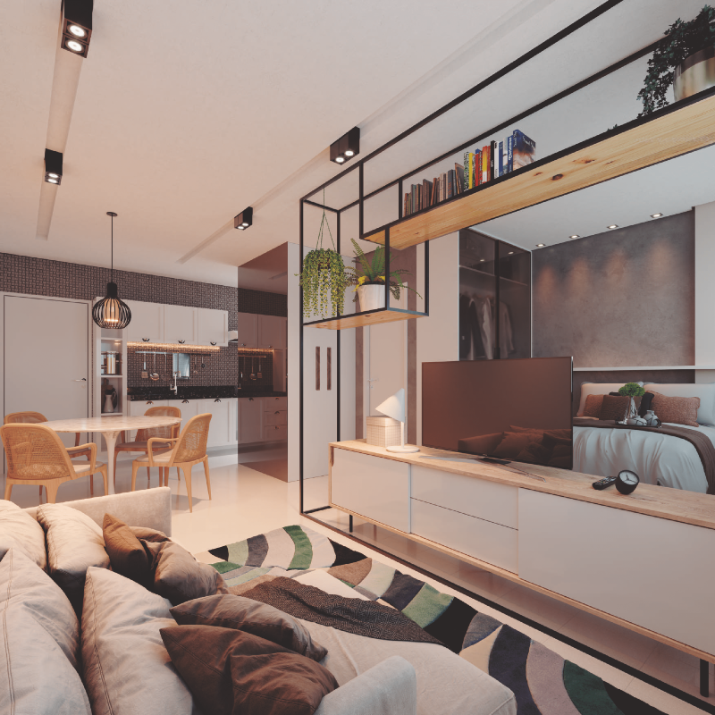 O Luar das Oliveiras conta com 16 pavimentos tipo com 8 apartamentos por andar e ainda um pavimento de lazer na cobertura. As plantas possuem quarto e sala integrados, banheiro social, cozinha, instalação para split, área de serviço e 1 vaga de estacionamento.
