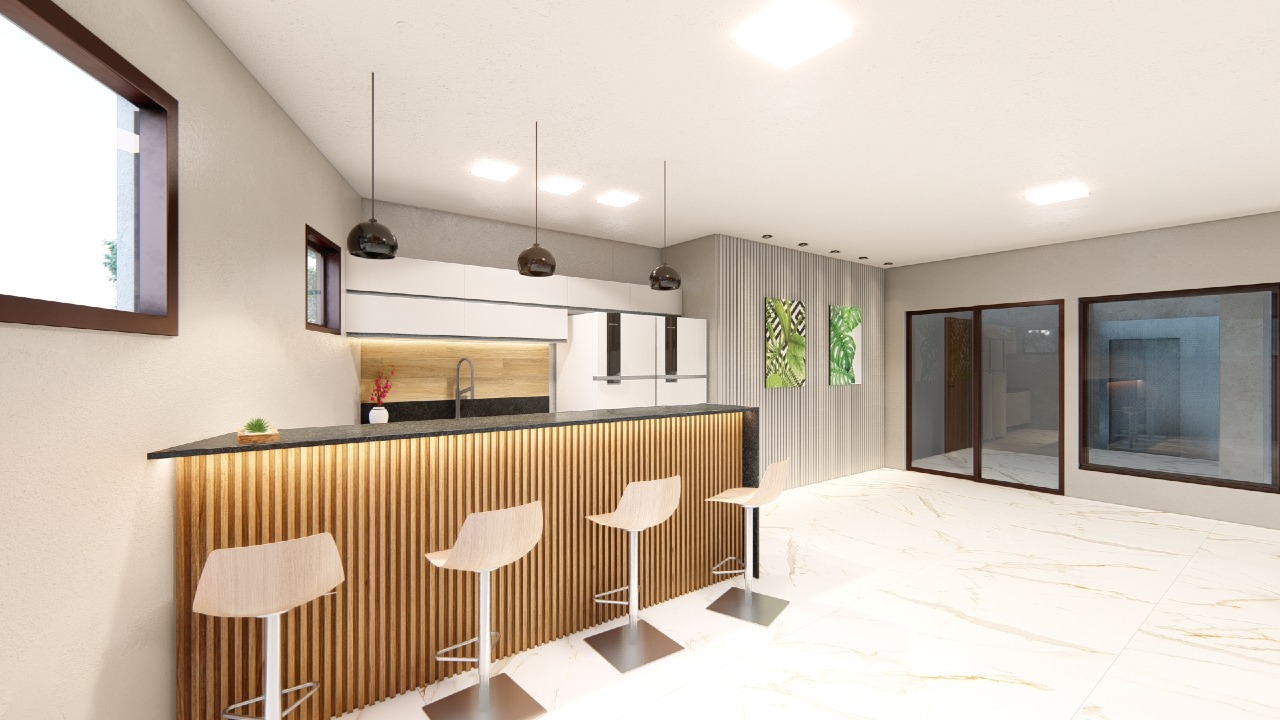 São 19 pavimentos tipo com 3 apartamentos por andar. Área de lazer com piscina, espaço gourmet, churrasqueira e jardim.