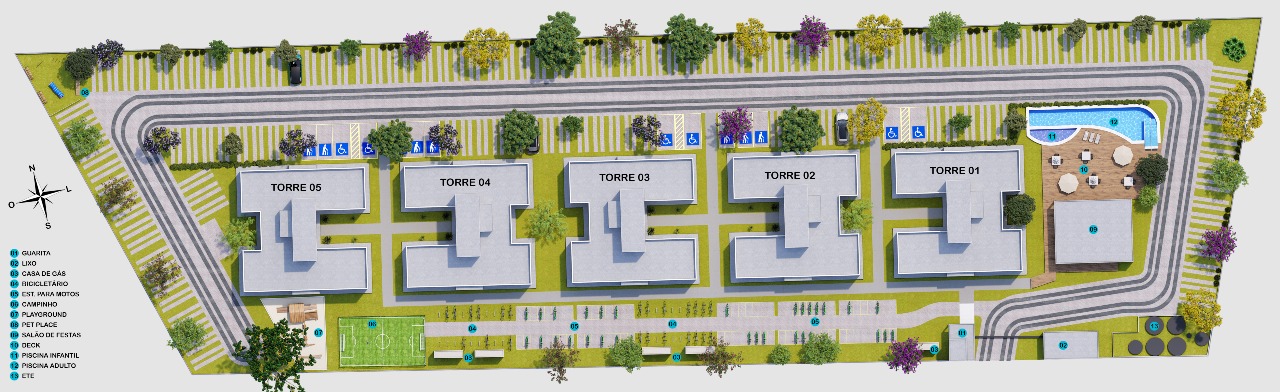 O empreendimento conta com 5 torres residenciais e uma infraestrutura de lazer completa,