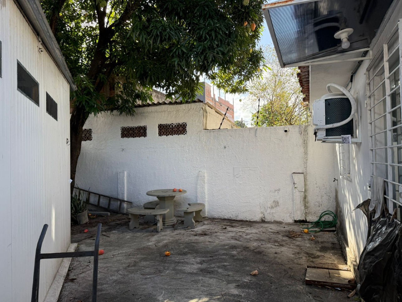 Jardim frontal e quintal nos fundos.