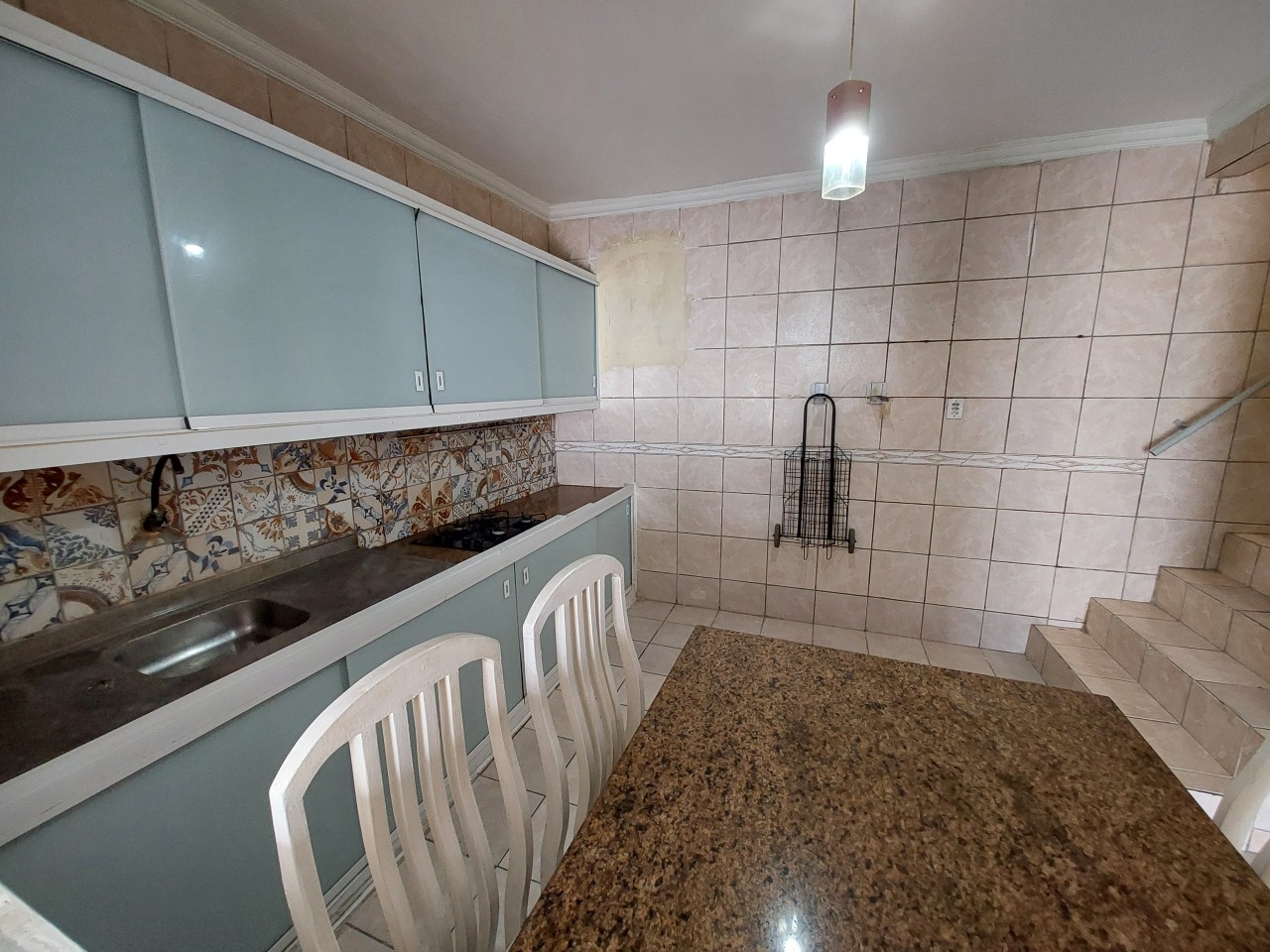 No térreo, há garagem com jardim, sala para dois ambientes, quarto suíte e cozinha. No primeiro andar, há mais 3 quartos, e 1 banheiro social. E no segundo andar há uma área coberta para eventos, área de serviço e edícula.