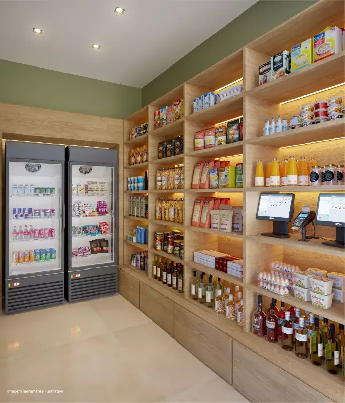 Empório, mini mercado, salão de beleza e spa.