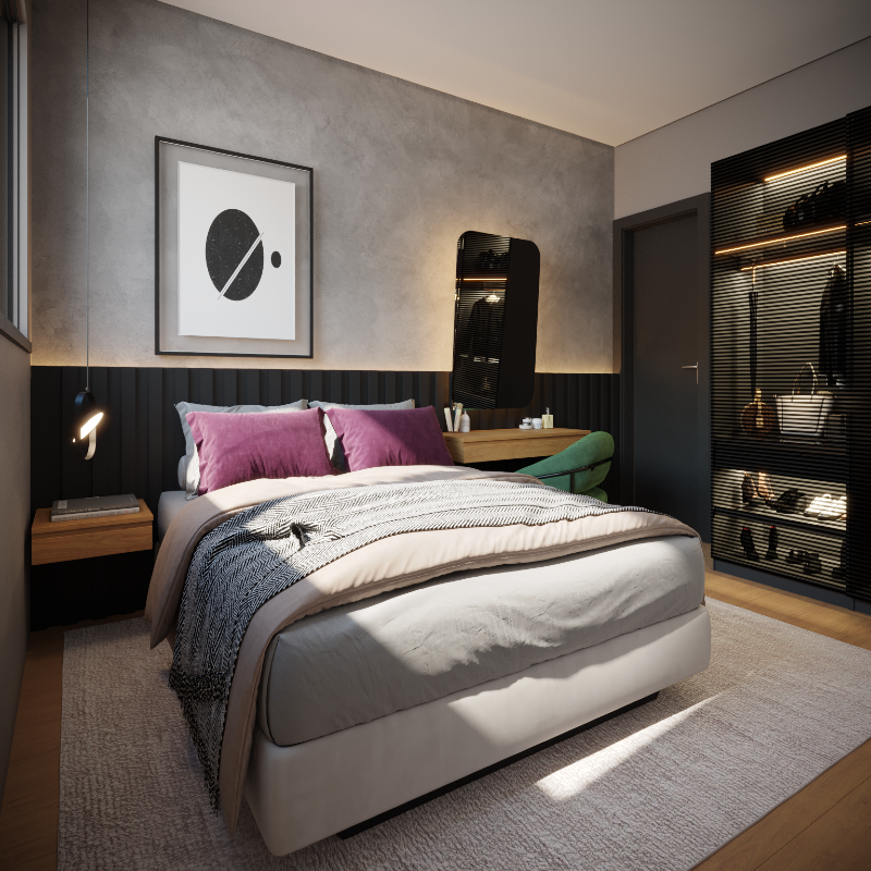 Unidades de 2 quartos com suíte canadense e 43m2.