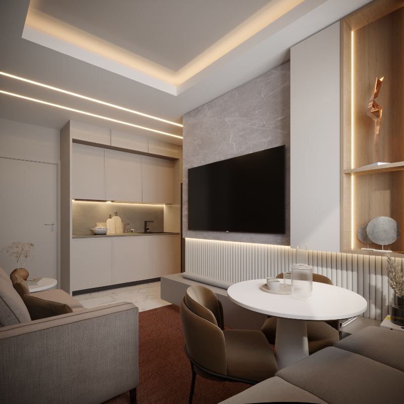 Unidades de 1 quarto fechado entre 26m2 a 29m2;