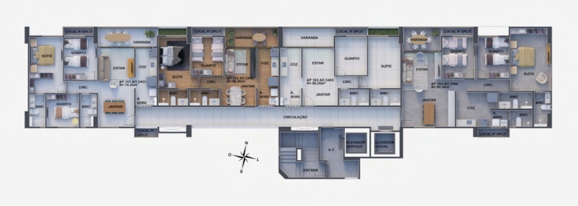 Apartamentos modernos de 56m² a 90m², planejados para oferecer conforto, estilo e funcionalidade para você e sua família.