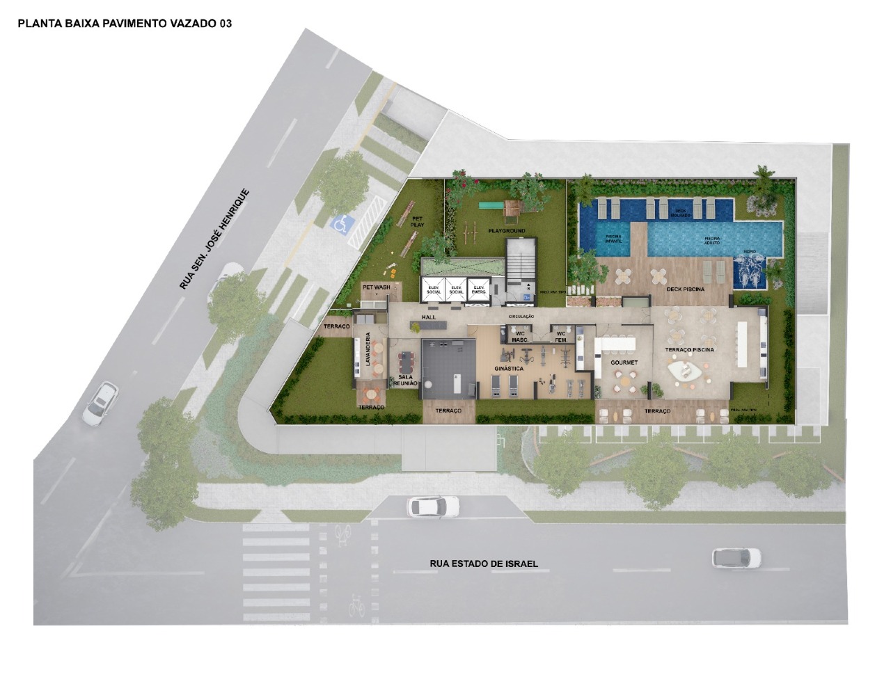 Além de ampla área de lazer , com piscina adulto e infantil, playground, petplace, lavanderia, academia, sala de reunião, área gourmet,