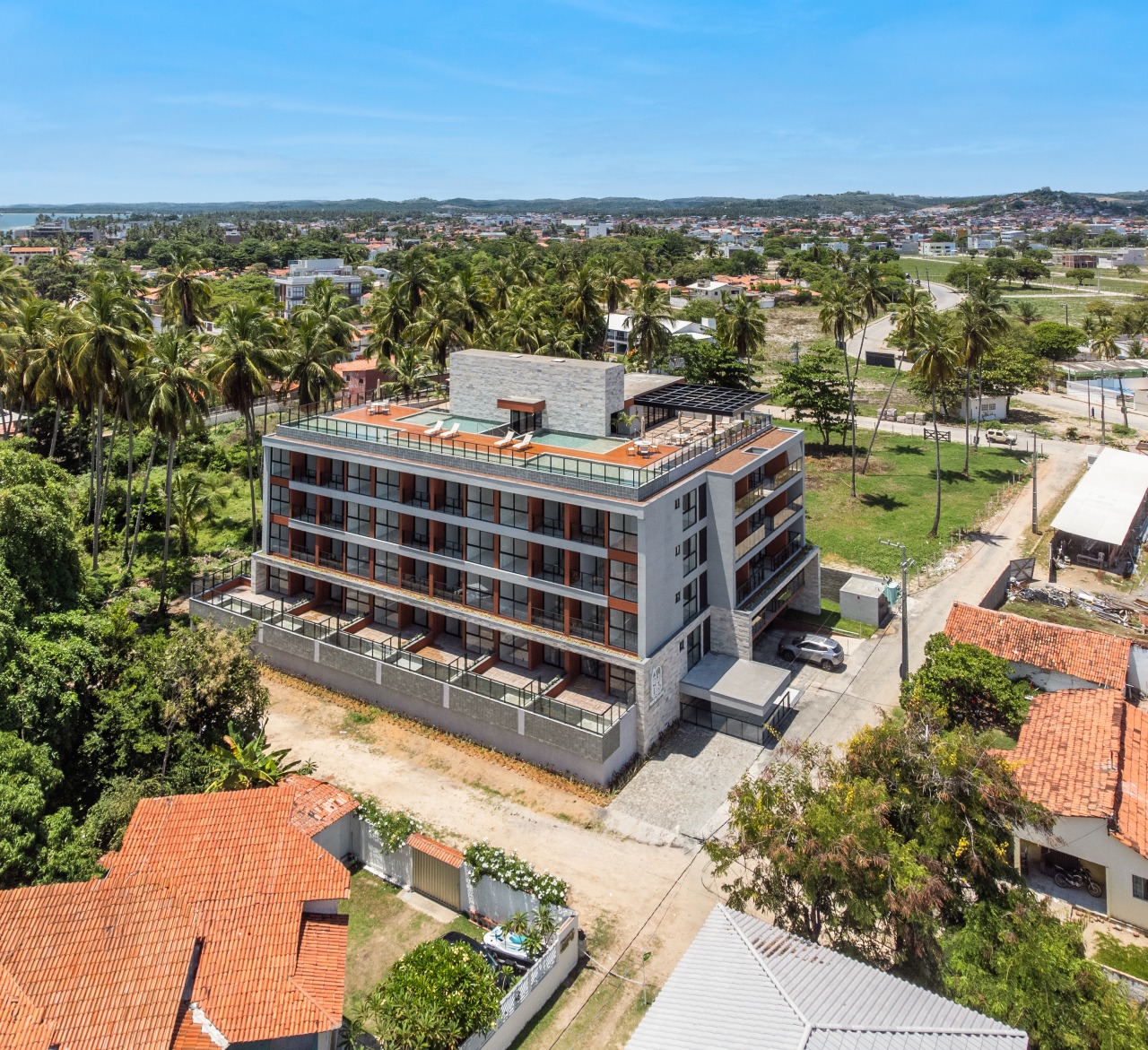 Rooftop com uma vista incrível para contemplar a linda vista da praia de campas ;