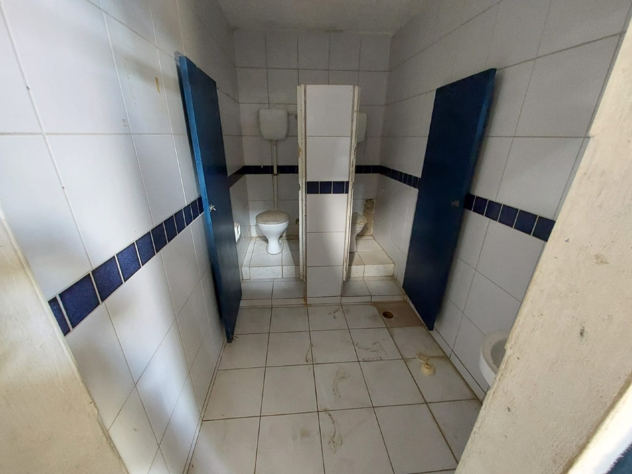 Galpão com direito alto, 2 salas de escritório, banheiro feminino e banheiro masculino, salas com piso em cerâmica e pátio para carga e descarga.